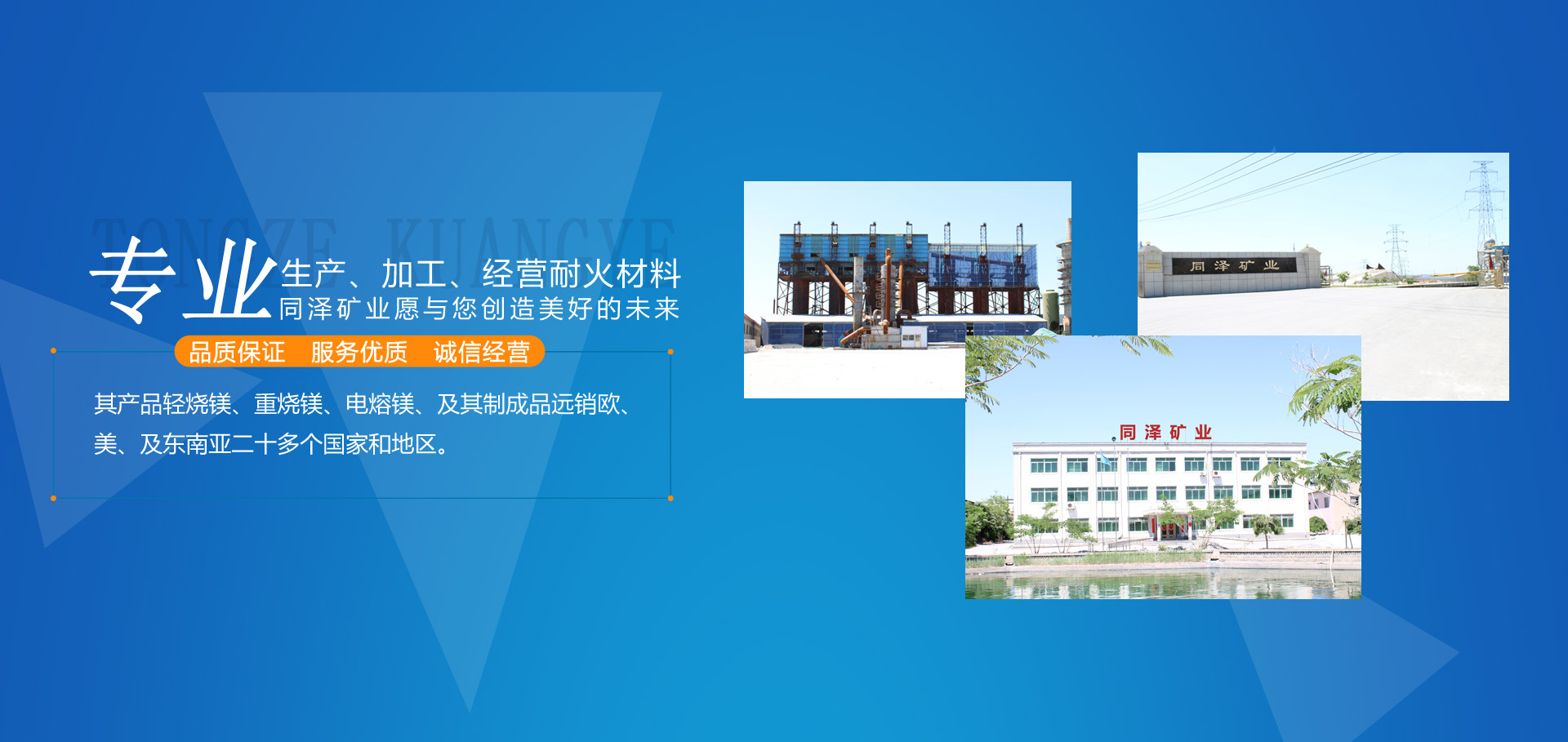 大石橋市同澤礦業(yè)有限公司,是以生產(chǎn)、加工、經(jīng)營(yíng)各種耐火材料為主的綜合性經(jīng)濟(jì)實(shí)體。其產(chǎn)品輕燒鎂、重?zé)V、電熔鎂、及其制成品遠(yuǎn)銷(xiāo)歐、美、及東南亞二十多個(gè)國(guó)家和地區(qū)。